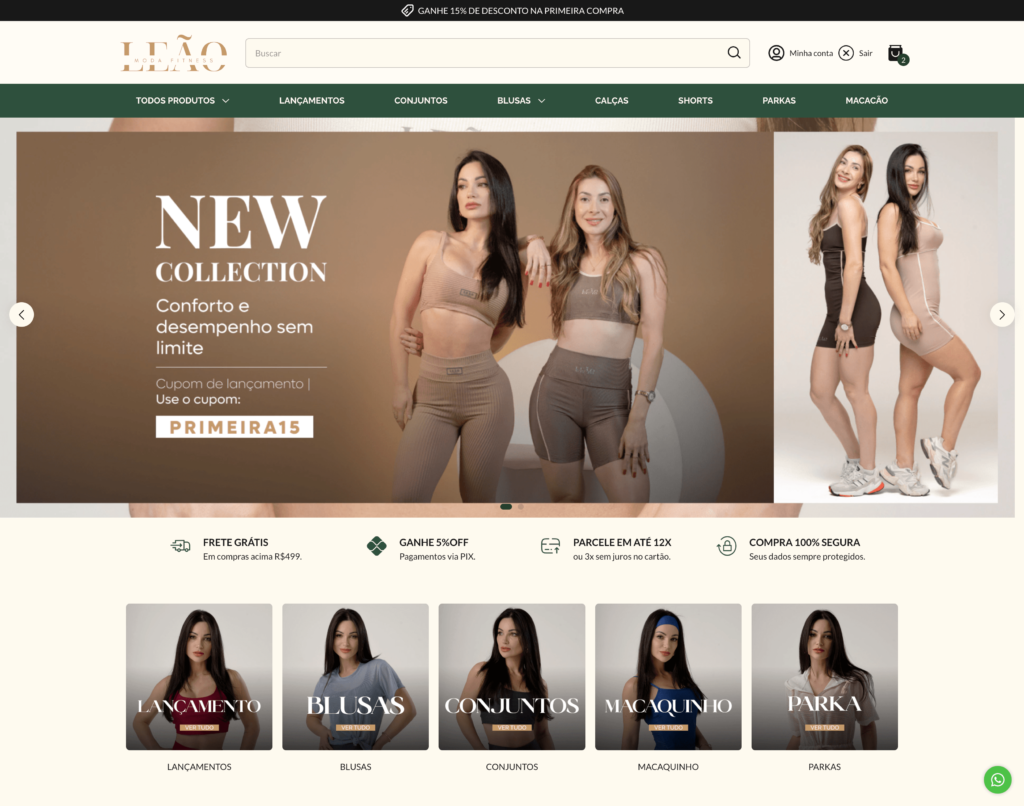 Checkout otimizado, integração com PIX e cartões, além de automação de frete para uma compra ágil e sem complicações.