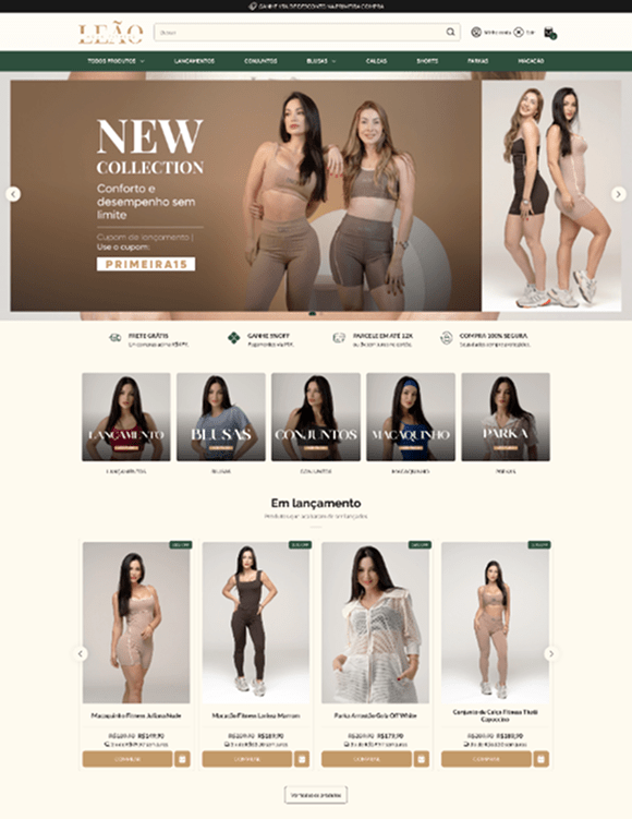 Design responsivo e moderno para garantir uma experiência fluida, com carregamento rápido e navegação intuitiva, aumentando as conversões.
